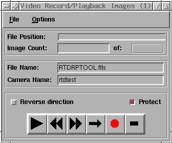 The Record/Playback Images... item allows the recording of images from a camera to file, and the playback of images from file to the RTD. The images are recorded as a FITS cube; thus this tool can be used to replay FITS cubes produced by other applications.