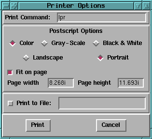 This class extends the PrintDialog class to be able to print the contents of a canvas as postscript. There are options to print in color, grayscale or mono, set the page size and orientation. You can print to a file or directly to a postscript printer.