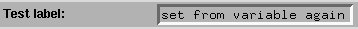set w [LabelEntry .le \ -text "Test label:" \ -value 42 \ -labelwidth 20 \ -valuefont 8x13 \ -relief sunken \ -borderwidth 3 \ -command puts \ -textvariable "myvar"] pack $w -fill x -expand 1