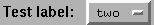 set w [LabelMenu .lm \ -text "Test label:" \ -valuefont 8x13 \ -relief raised \ -orient horizontal] pack $w -fill x -expand 1 $w add -label "one" -command "foo one" $w add -label "two" -command "foo two" $w add -label "three" -command "foo three"